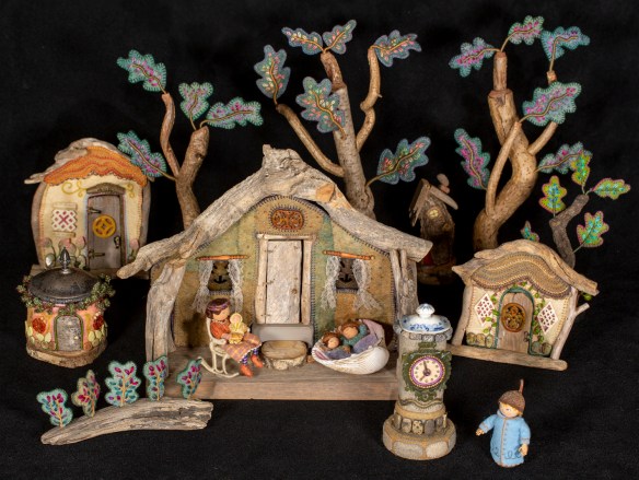 The summer scene is slowly taking shape and I hope to finish it in time for my exhibit in Vermont this fall. When the piece is complete, I’ll write a series of posts that go into more detail, with commentary and photos that document my process. It’s the 4th in my seasonal landscape series. You can learn about how I made the other three, Frosty Morning, Mossy Glen and Harvest Time, in earlier posts on this blog. The images are printed as cards and jigsaw puzzles (20% off sale July 23 – 31), which are available in my Etsy Shop.