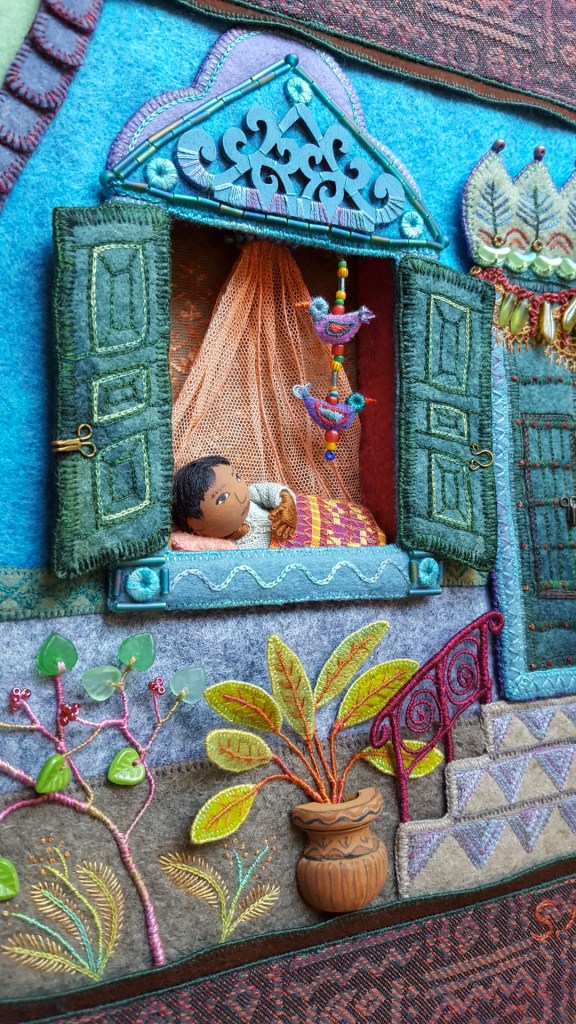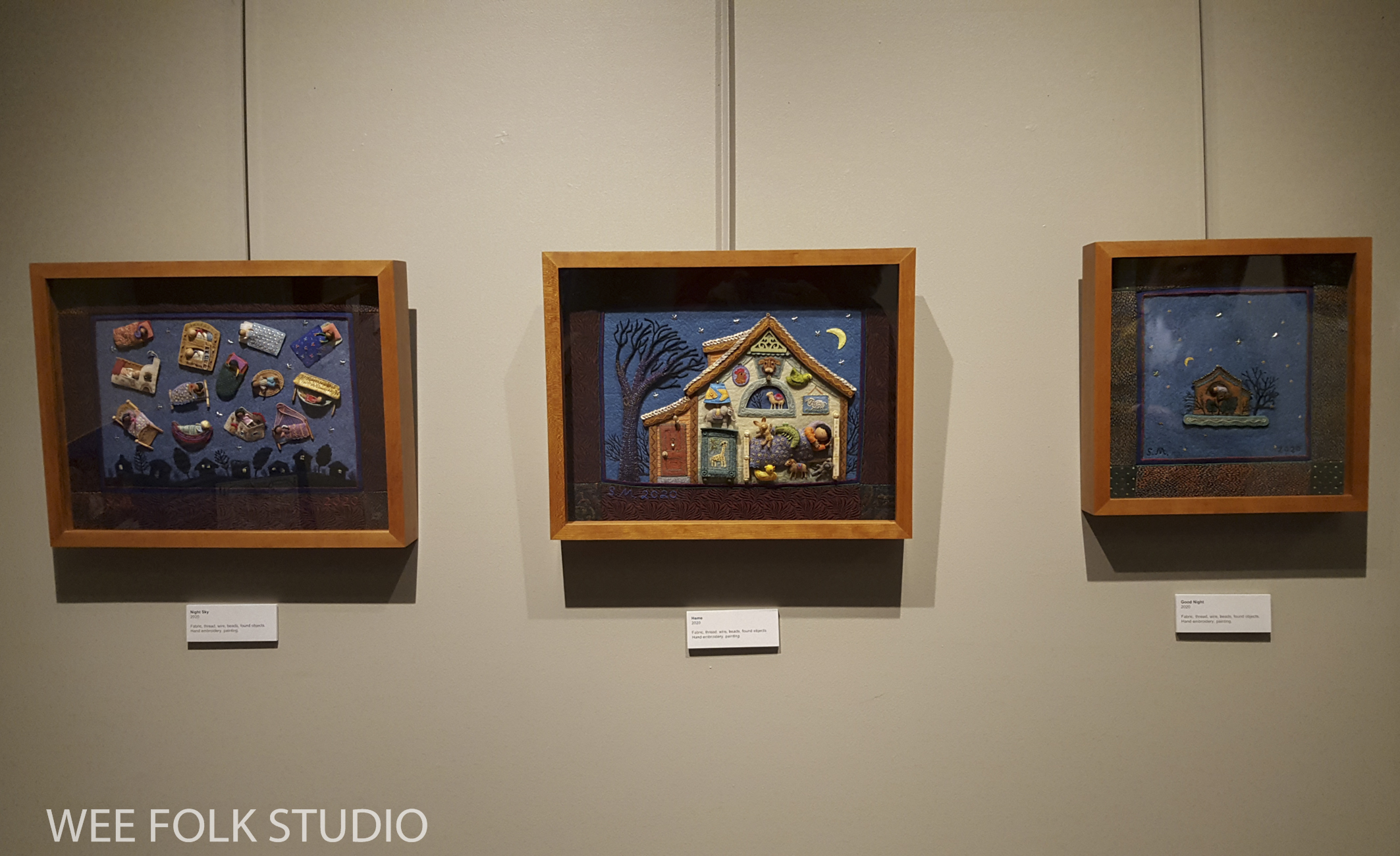 Also in the case, above the snow scene set up, are printed enlargements of Frosty Morning, Winter Play (from Felt Wee Folk) and Snow. All 3 are available as cards in my shop.