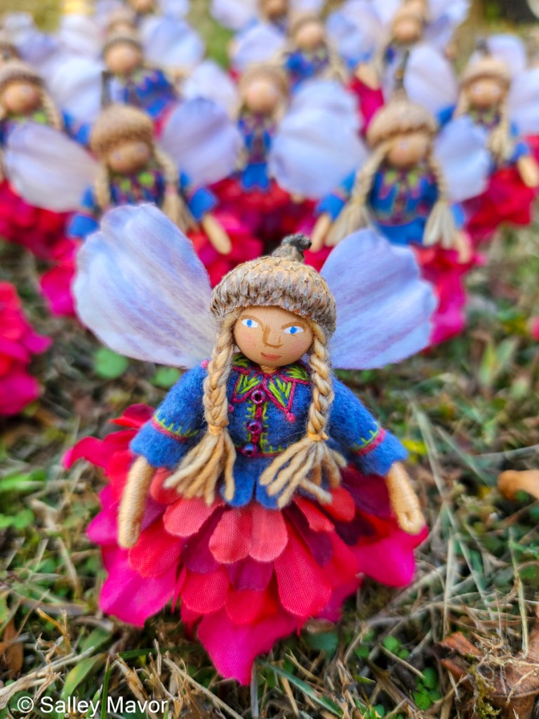 Both sets of 24 dolls are dressed, coiffed and winged and will be ready to fly off to their new homes on Saturday, Nov. 23, 2024 at 10 AM (Eastern US time). They will be sold for $100 each through my Etsy Shop on a first come, first served basis, so please act quickly if you really want one! Sorry, no pre-orders ahead of time. I realize that 10 AM on Cape Cod is in the middle of the night for those of you on the other side of the world, but I can’t figure out how to make it perfectly fair for everyone.