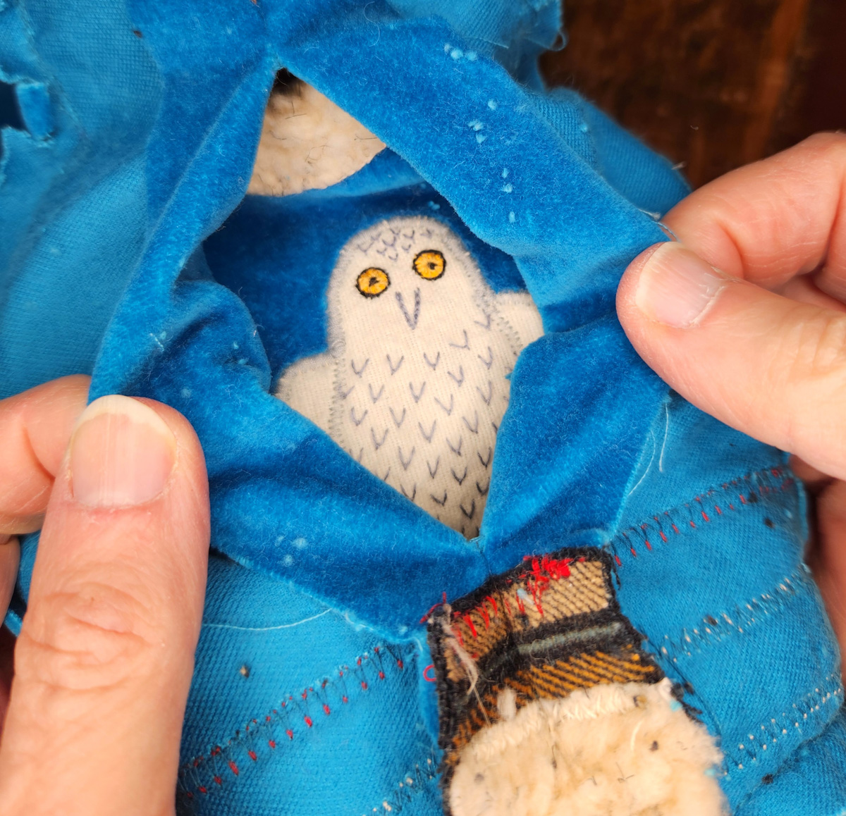 I love embellishing with blanket stitching, especially with variegated thread. It’s a simple, but effective way to create an edge that looks clean and assertive, while also displaying a handmade quality. For me, it’s important to show that a real person made it, not a machine. For this banner, I created layers of felt pieces, which I blanket stitched with pima cotton (Watercolours by Caron).