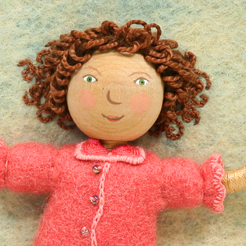 I ripped out the seams of an old, faded pair of my son Peter’s overalls. There was exactly enough fabric to use for each section of sky. I dyed the light blue pieces sunset pink and then graduated shades of dark blue. For the night sky on the last pages, I used a midnight blue colored wool.