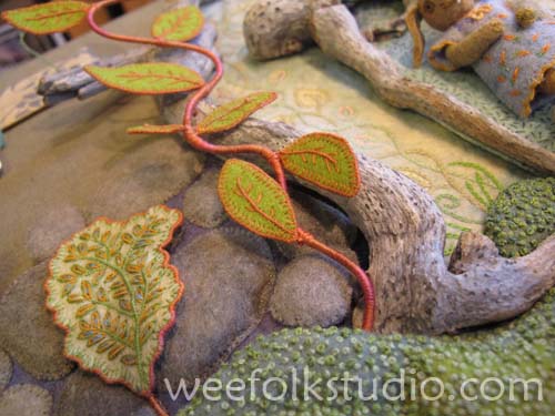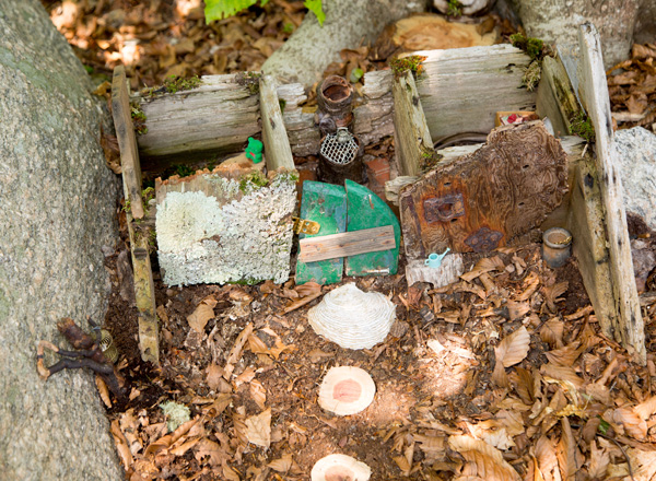 And another remarkable miniature world made by Wendy Bagley. “Woodland House of Wonder” stretches along a stone wall on the edge of the path into Beebe Woods.