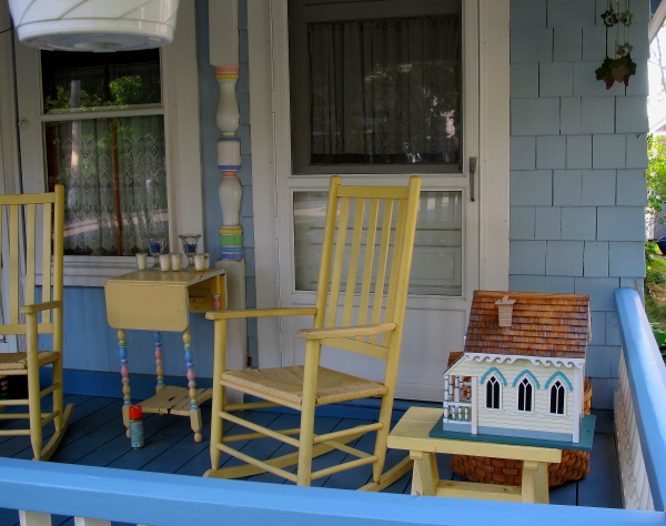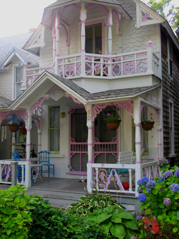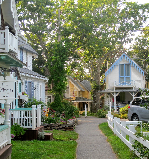 Last Saturday, a friend and I took a boat over to Oak Bluffs. We had tickets to go to The Moth on Martha’s Vineyard, which I describe at the end of this post. Before the evening show, we walked around the Martha’s Vineyard Camp Meeting neighborhood and I took some photos of the perfectly charming little cottages. See a post about last year’s visit here.