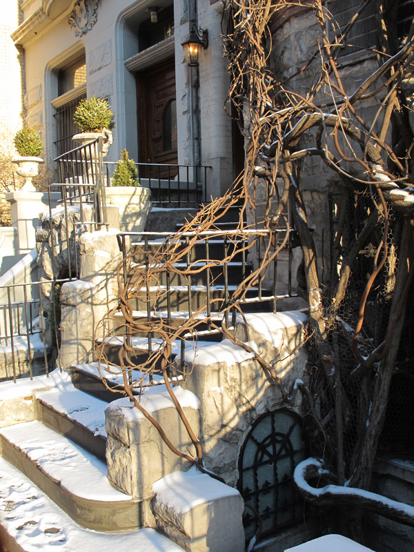 It was frigidly cold and there was a pretty dusting of snow on the sidewalk and stairs.
