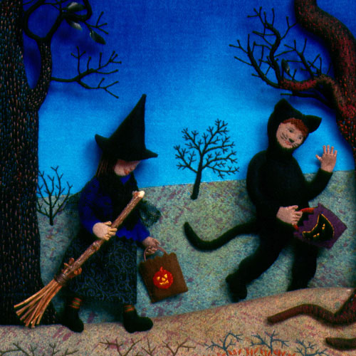 Last Saturday, the Danforth Museum in Framingham, MA, had an opening reception for their new exhibits, including my show in the children’s gallery. The original fabric relief illustrations will be displayed here until January 23rd, 2011. I really like the way they hung the artwork, clumped together in tight group-lets, with one above the other. That way they could fit more pictures in the space – 45 out of the 51 illustrations from my new book, Pocketful of Posies.