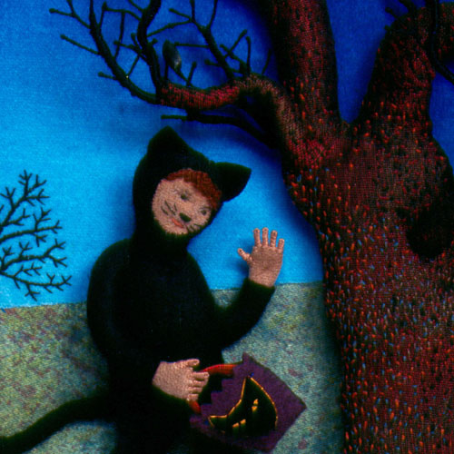Many saw my work for the first time. They had come to the museum for other exhibits and just happened to come into the children’s gallery. It was fun to watch people of all ages look  from a distance and then be drawn in to examine the pictures more closely. It is most satisfying to see grown men’s delight in viewing the work. In the years that I’ve been stitching, I’ve become conscious of the tendency to put textiles in the “women’s work” category, as if handwork wasn’t worthy of recognition.  I say that stitching is just a technique and a way of translating ideas. After meeting and talking with people, I feel as if this book has jumped through age and gender barriers.