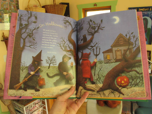 I met a museum docent, a young fellow who had not been exposed to these nursery rhymes during his childhood in India. He was so taken with the artwork, that he wanted to learn all of the rhymes from the book. He asked me about my use of wavy borders and commented on the soft curves and lack of straight lines in the pictures. He said, “Looking at these pictures makes me happy.”