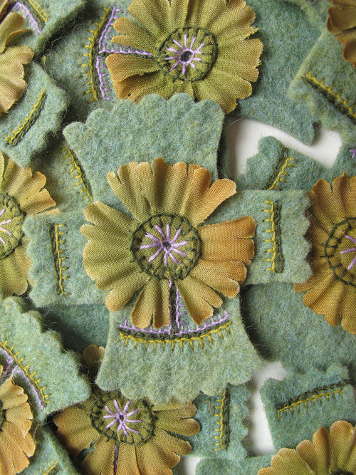 Since the age of 12, I’ve been making and selling things, often mass producing large quantities of the same item. My little factory began with Sgt. Pepper’s Lonely Hearts Club Band playing on the record player and now I work to the sound of Rosanne Cash. It’s time for a change, but I wanted to make one more fairy before devoting 100% of my studio time to my fabric relief artwork. Here are some photos of PANSY in the making.
