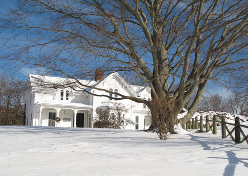 The landscape changes rapidly from open marshes to woods with tall trees. Here’s the back of Bourne Farm, looking toward the barn. I find this biking ritual good for my body, mind and spirit.