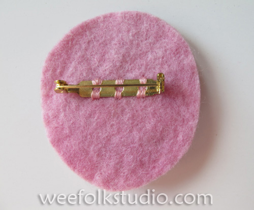 Step 2. Sew the pin back to the bottom layer with floss or sewing thread.