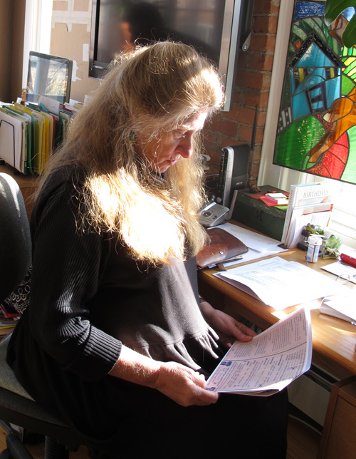 I recently visited Studio Goodwin Sturges in their new location in Providence, RI. Judy Sue Goodwin-Sturges and I have known each other since I took her illustration classes at RISD in the mid 70’s. We’ve worked together on books since she started her studio in the 90’s. In addition to teaching, she represents a wonderful group of artists, some of whom are former students, and matches them up with publishers. Here she is in her studio office.