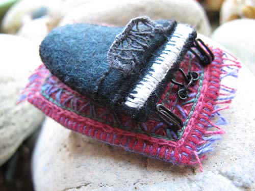 Living without TV, I was unaware of the numerous cable craft shows and was unfamiliar with this new term “tutorial” on the internet. I’m slowly crawling out of my peaceful sewing room, but question how a person can both do their creative work and keep in touch with the vast sewing/fibers network! I suppose, like everything, it’s a question of balance. I hope that you enjoy this cat pin project and use it as a launching pad for other ideas of your own. You can read and see earlier posts about my pin business here.