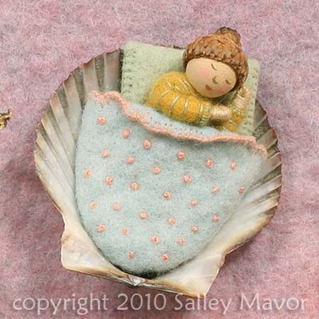 The scale and natural delicacy of shells make them suitable props for my little dolls. Here’s a 2″ mermaid photographed on the beach.