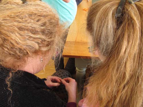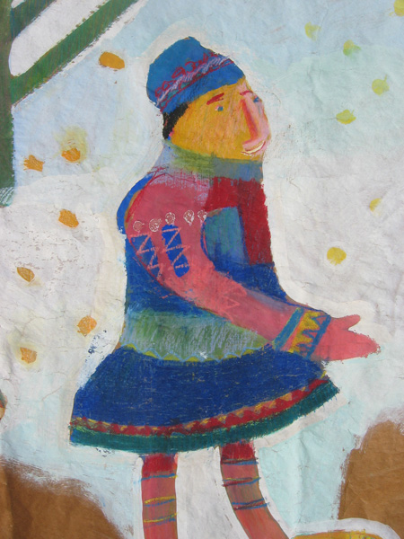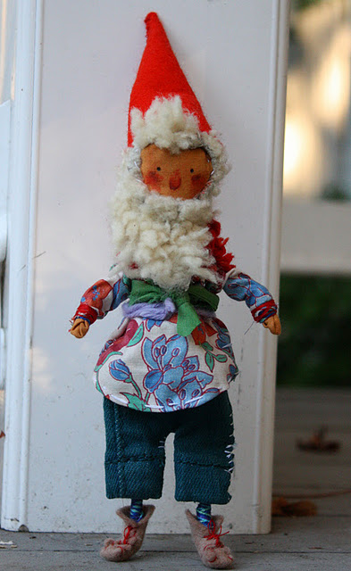 One Monday afternoon in October, I had the pleasure of meeting Phoebe Wahl, who is a junior illustration student at RISD. She’s taking a class with my friend and former teacher Judy Sue Goodwin-Sturges this semester, so Phoebe must have learned about my artwork from her. She sent me an e-mail with a link to her website and I was so charmed by her paintings and cloth characters that I invited her to visit my studio. It’s a manageable distance, so she took the bus from Providence to my home on Cape Cod. She gave me this gnome doll, which she had made the night before.