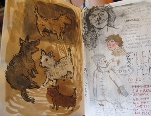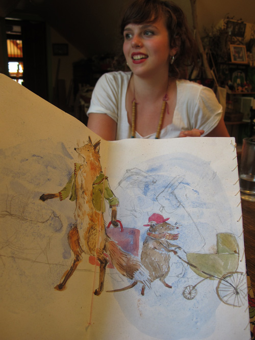 I love how she works quickly, so her dolls are fresh, not fussy. She draws beautifully, too and she showed me her sketch book.