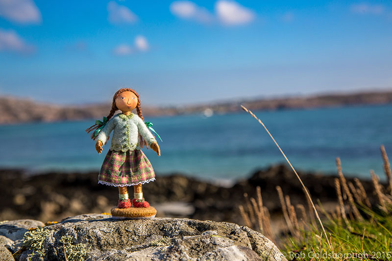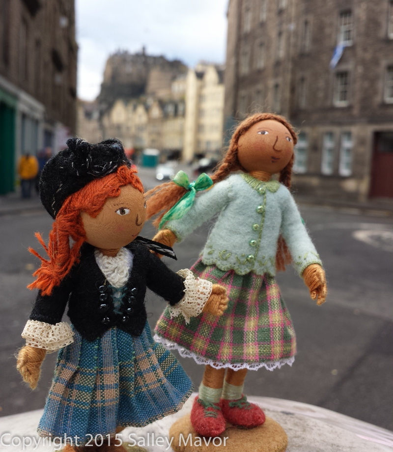 Remember when Polly went missing and I had to come up with a replacement traveler? Well, Rosie was a great sport to fill in and she ended up having a great trip. But low and behold, who did she find in Scotland but Polly! After she got over the shock of seeing her bedraggled cousin in the heather, Rosie listened to Polly’s story. Polly told the harrowing tale of how she stowed away in a backpack, making it through airport security and the trans Atlantic flight. She barely survived being crammed inside a pocket with a pair of sun glasses and a bottle of aspirin. But, she was glad to not be left behind! From then on, Polly and Rosie were inseparable. They climbed stone walls at Urquhart Castle…