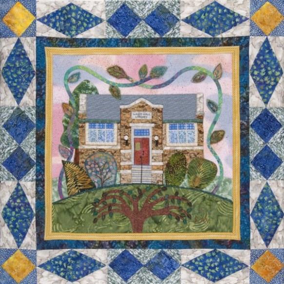 My Self Portrait: A Personal History of Fashion is back on public display at the Woods Hole Library. The library has been its semi-permanent home (except when it is exhibited elsewhere) since I made the piece in 2007. So, why loan it to the Woods Hole Library? Because this particular stone building has been a constant source of comfort and stability during my whole life. It’s a central part our community that reflects the unique charm and character of our village.15 years ago, I made a quilt square of the library for the Woods Hole Village Quilt, which is also on view.