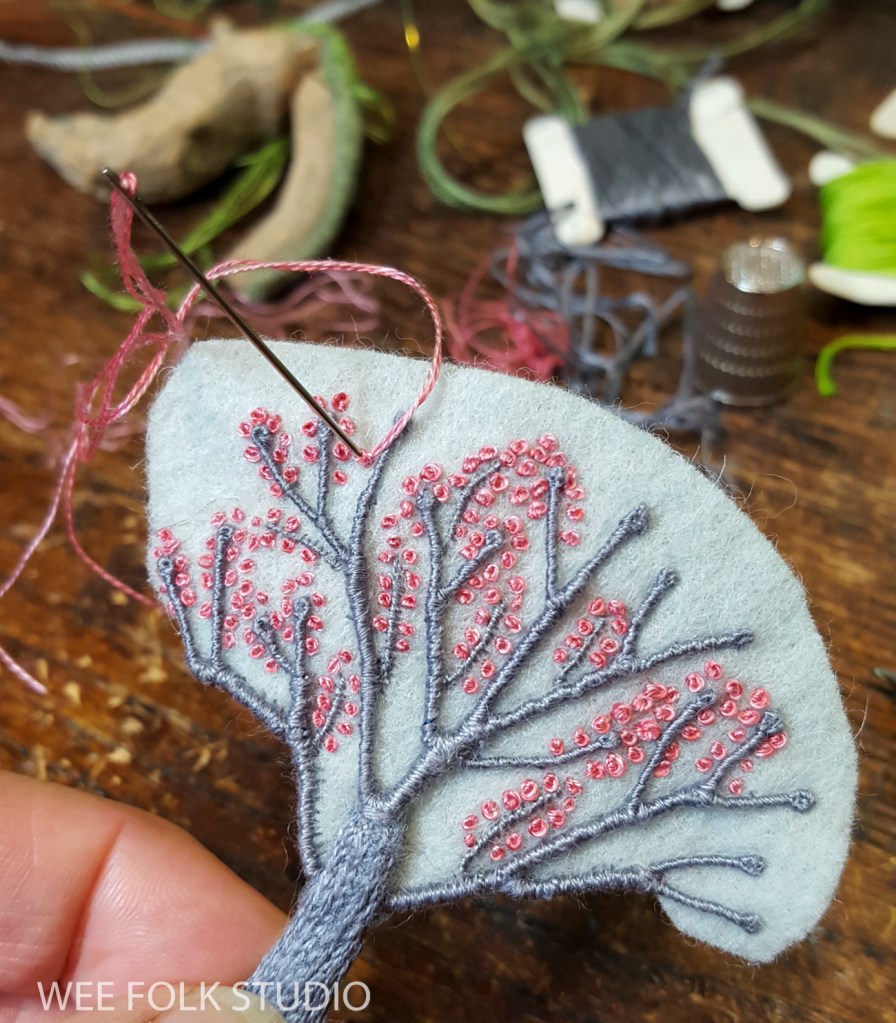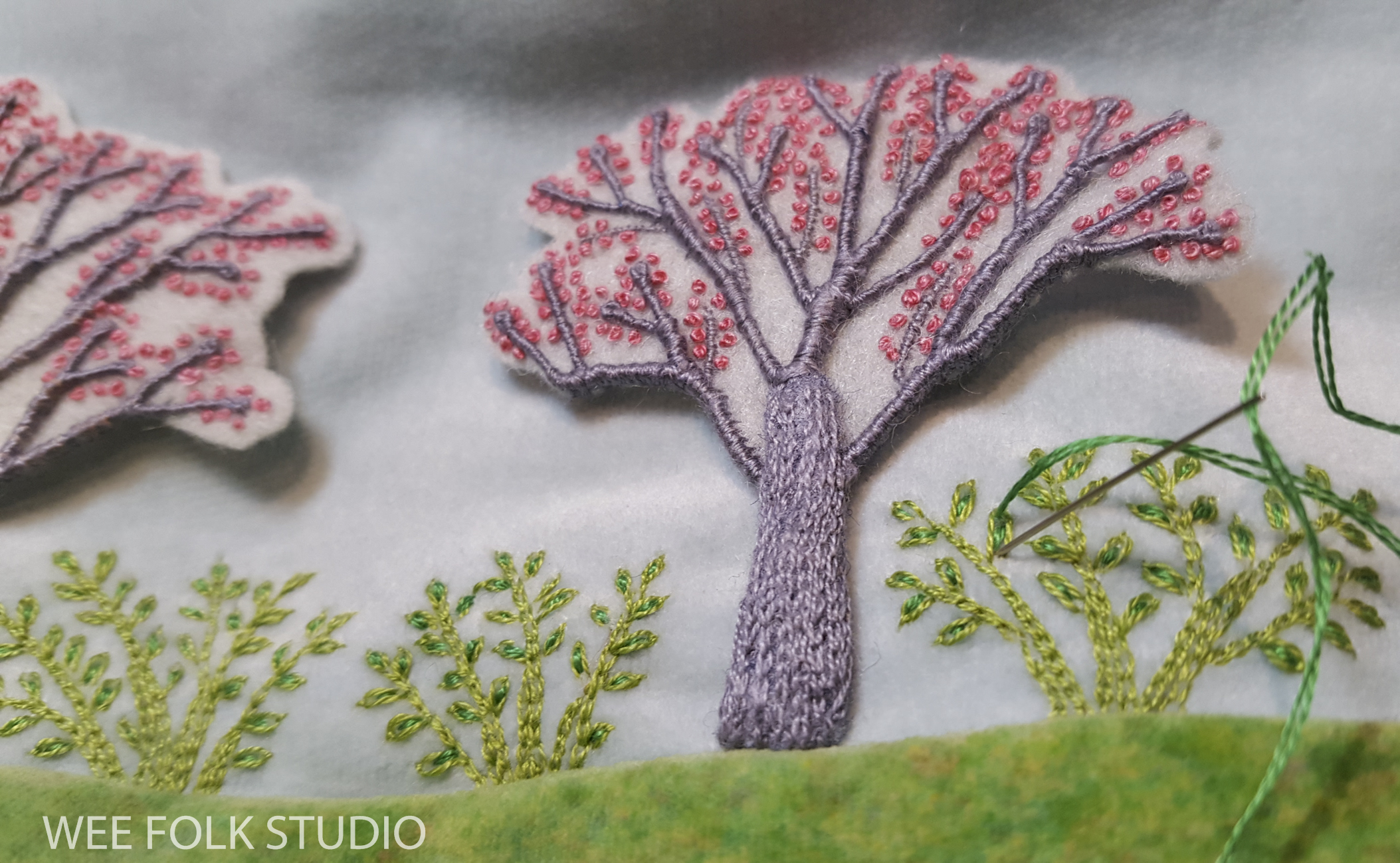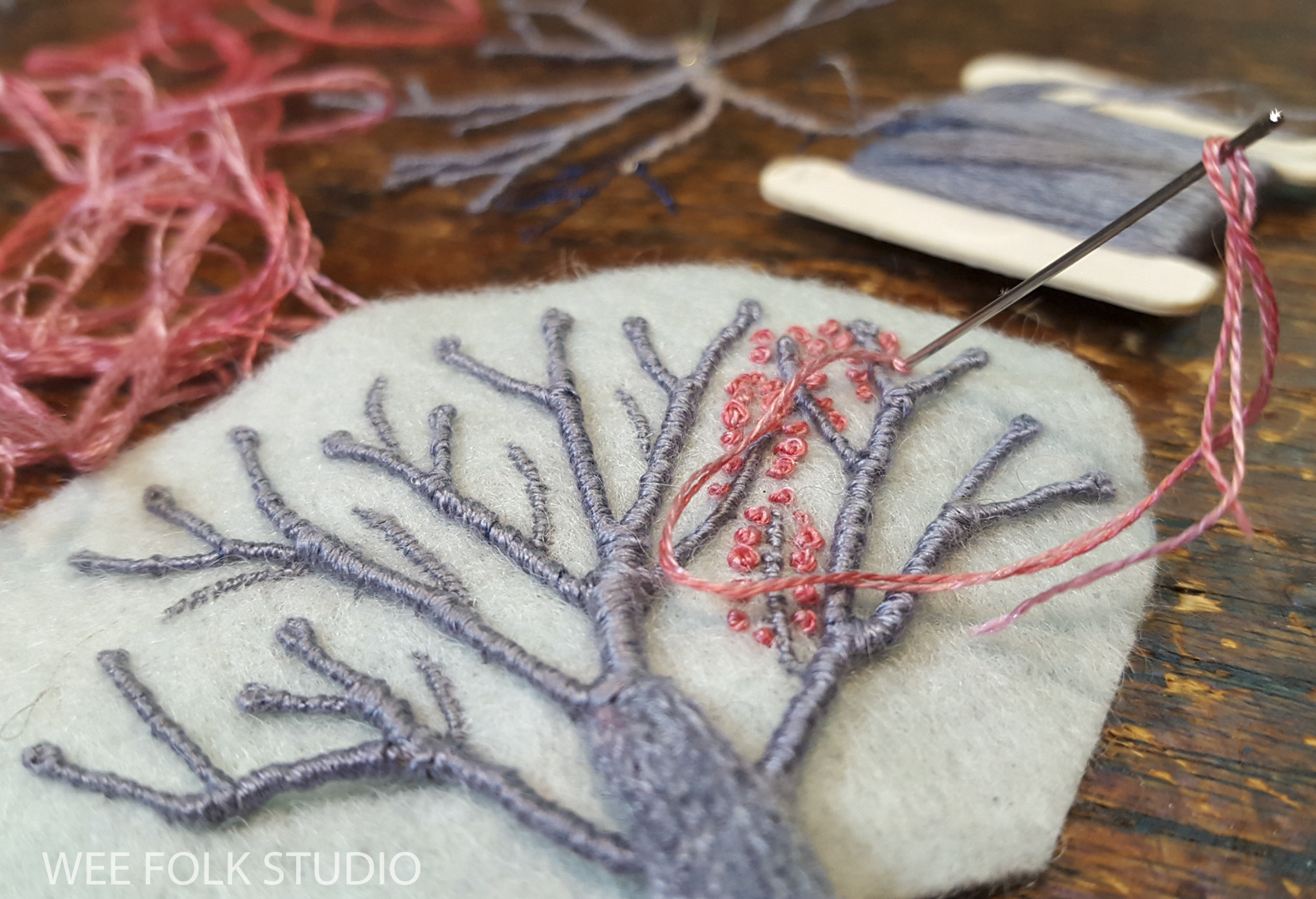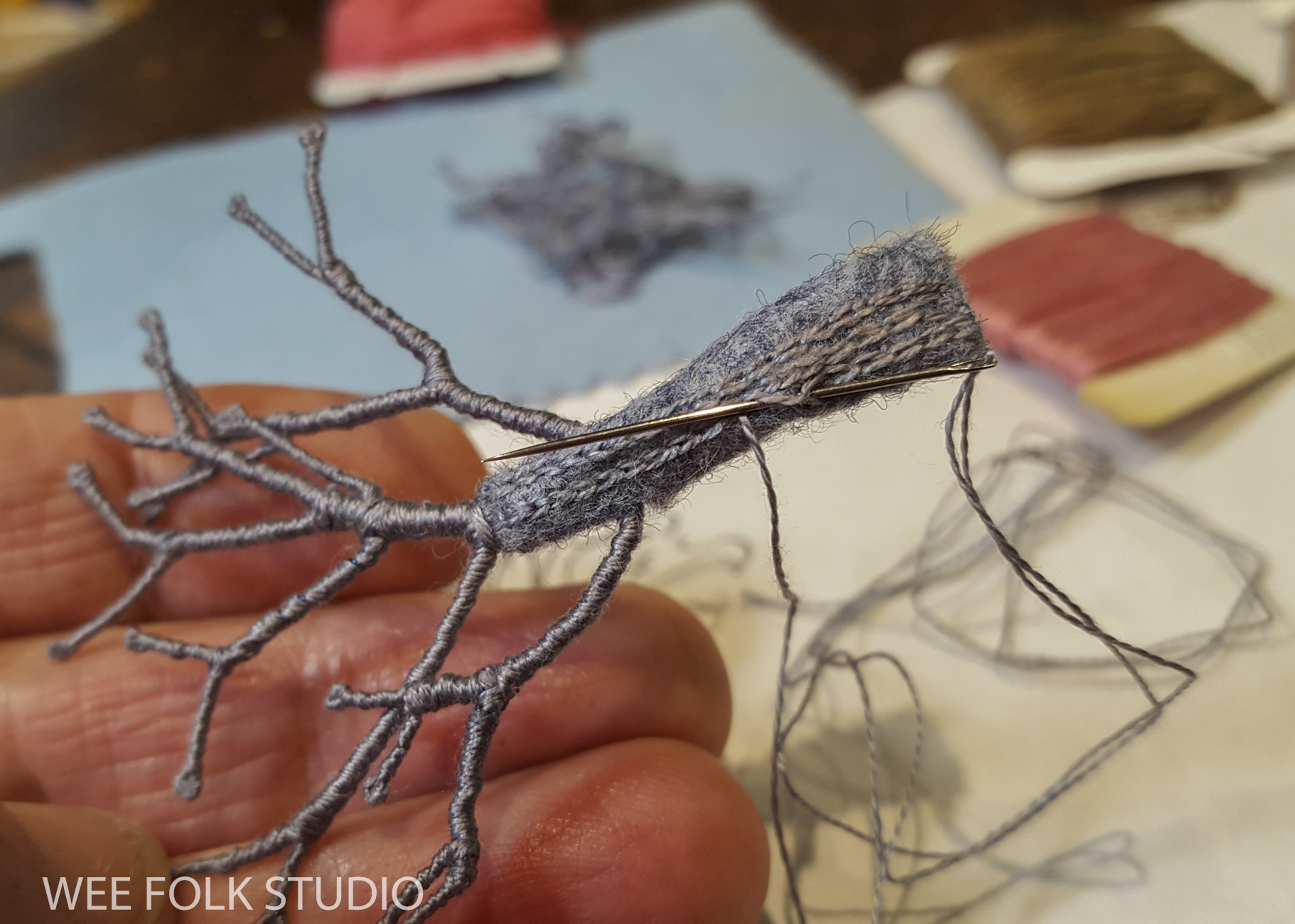 A woman wrote to tell me that 3 generations of her family enjoyed seeing my work at a recent exhibition. She especially wanted me to know that her 4 year old granddaughter was so taken with my self portrait that they couldn’t tear her away. For little Emma, the progression of dolls opened up the concept of growing up and visualized the passage of time in a simple, direct way. I love hearing accounts like this, because it reaffirms my intention to make art for all ages, whether it’s book illustration or stand alone embroidered pieces like this one.
