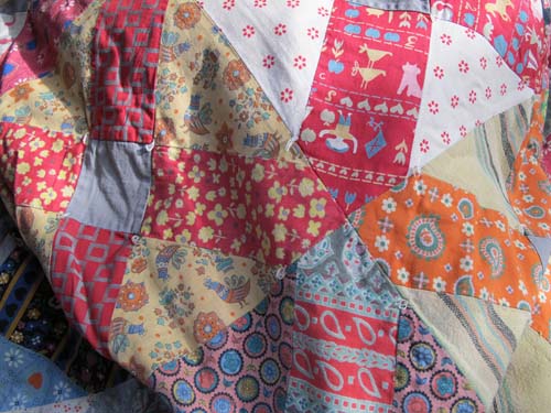 My friend, Terry came over with her 2-year-old daughter, Molly, who was wearing a pair of jeans made out of the same light blue fabric! Terry is a seamstress and fabric lover, so she was not at all surprised when I asked her if I could have Molly’s pants when she outgrew them, which appeared to be imminent. I’ve kept the pants and when I hold them up at talks, they always get a reaction from both young and old audiences.