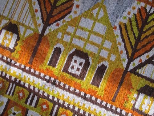 Through the fall and winter, I added the finishing touches, stitching blades of grass and hand sewing the floss edge around the border sections.