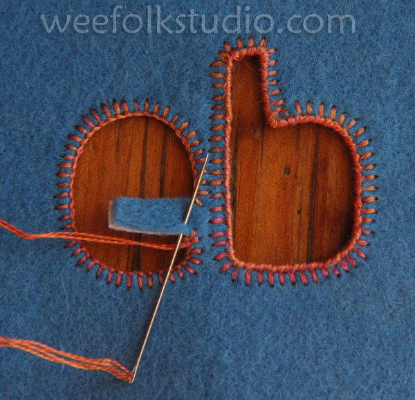 The interfacing helped give the felt some structure, so that it kept its shape during the stitching process. I added more stitches, creating a thicker outline.