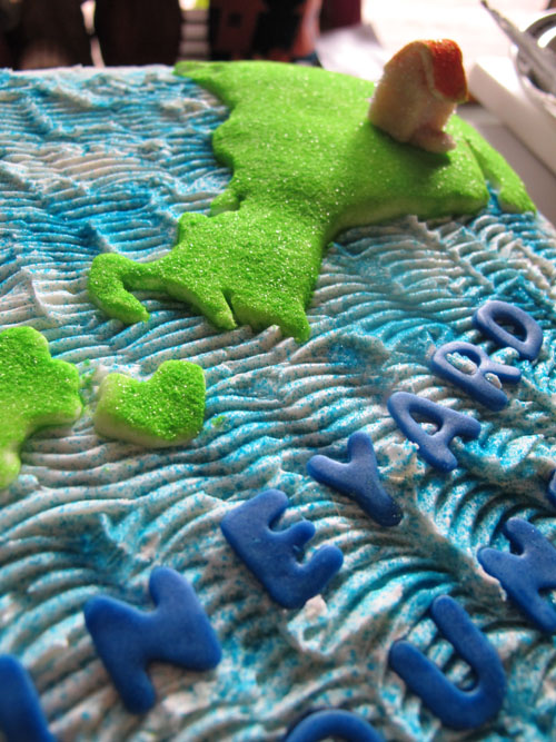 With Sam still in his underwear, I pressed forward and made the platform that they would stand on, which is basically a piece of wood covered with felt. I chain stitched their wedding date in orange and outlined the numbers in purple to make them more prominent.