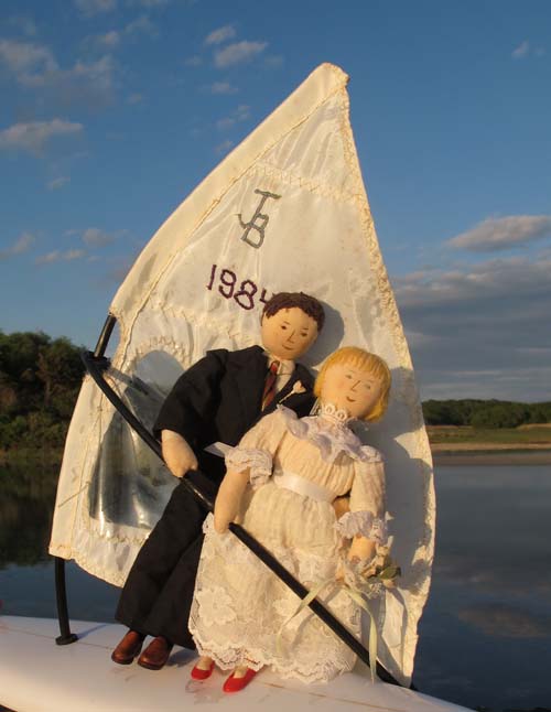 This summer, both my son Ian and Sam, his best friend from childhood, got married. Here they are at age 3 and at Sam’s wedding last weekend. So, I had the pleasure of making personalized cake toppers for 2 wedding couples! You can see the post I wrote about Ian and Liz’s dolls here.