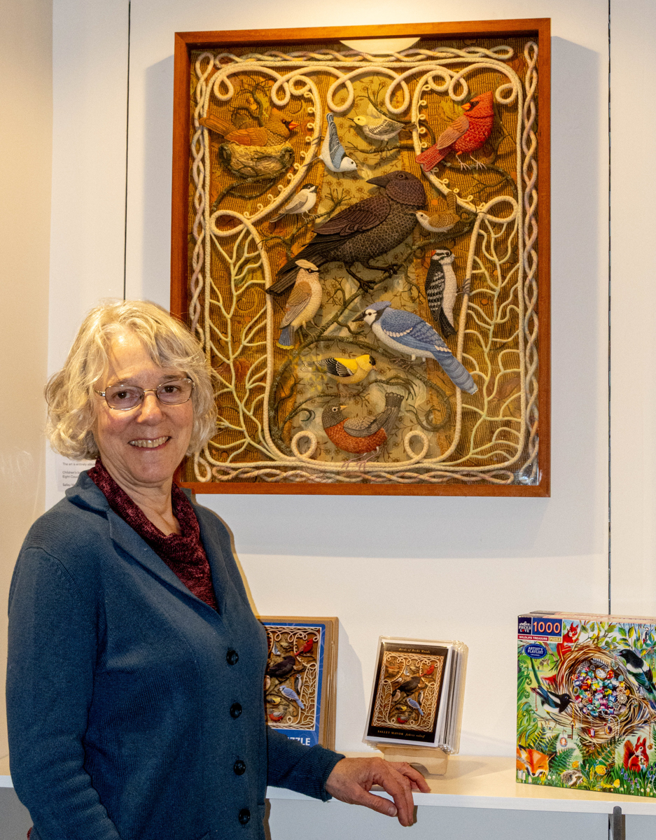 I’m excited to announce the opportunity to see Birds of Beebe Woods in person. The original framed piece is on display at Eight Cousins Bookshop (199 Main St.) in my hometown of Falmouth, MA, on Cape Cod. It will be there for an extended time, until its next scheduled exhibition at another location in 2027.